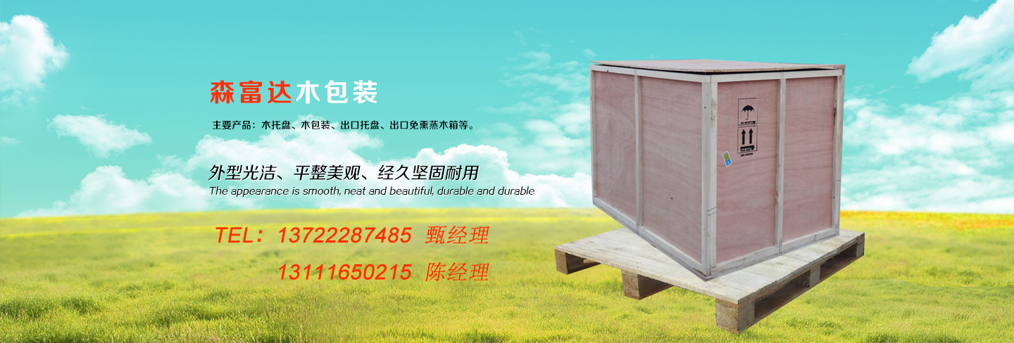 定興縣森富達木包裝制品有限公司,主要產品:木托盤、木包裝、出口托盤、出口免熏蒸木箱等。能出據出境貨物木質包裝除害處理標識加施防偽熏蒸證明。該產品采用優質硬木材料,確保托盤品質,外型光潔、平整美觀、經久堅固耐用,托盤使用周期長,安全穩定,具有承載量大,成本低,無蛀蟲等特點。適用范圍:物流、機械電子等行業,我們的產品外形美觀,質量可靠。交貨及時講究信譽。有生產和經濟上的實力。我們的產品已先后出口到美國、韓國、印度、意大利、俄羅斯及眾多國家。得到了國內外客戶的廣泛贊譽與認可。咨詢熱線:15930439758 陳經理